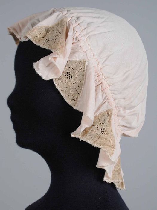 Slaapmuts van roze tricot, elastiek en driehoekige i...