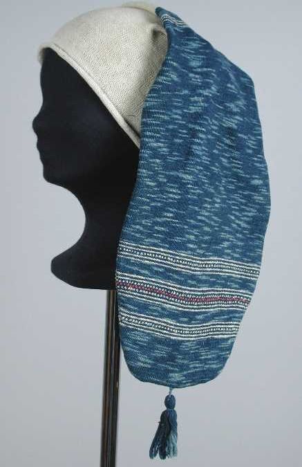 Lange ijsmuts gebreid van wit en blauw gemêleerde du...