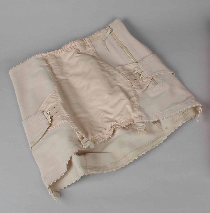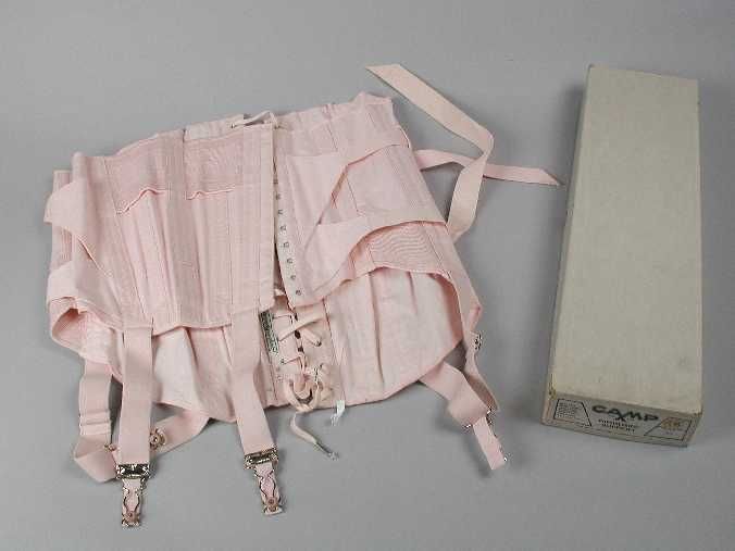 Heupkorset van roze stof met baleinen en haak- en oo...