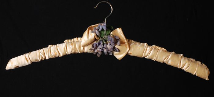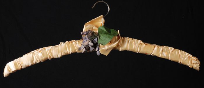 Kleerhanger bekleed met lichtgeel zijdesatijn met in...