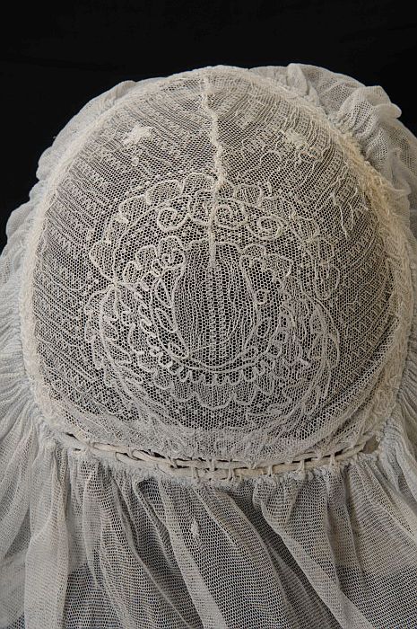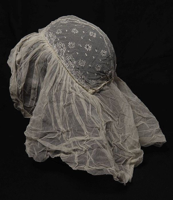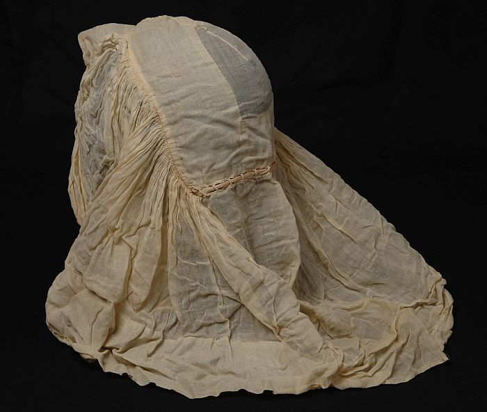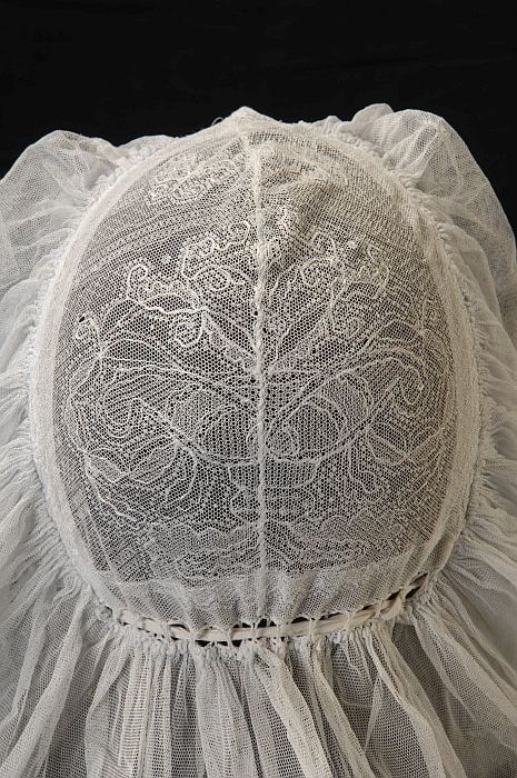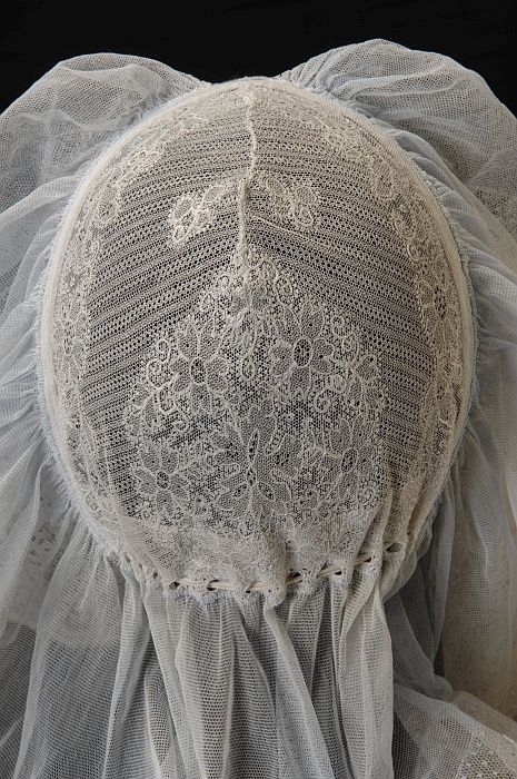 Rouwkeuvel, muts van zeer dun katoenen batist, stree...