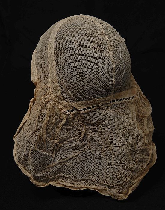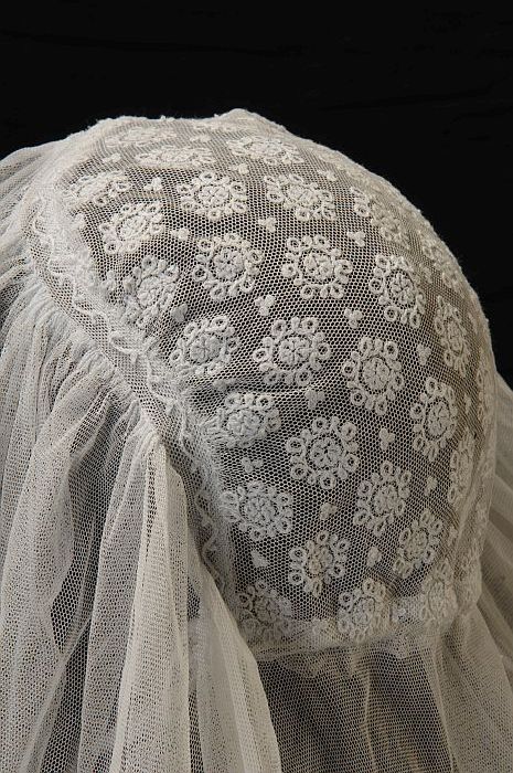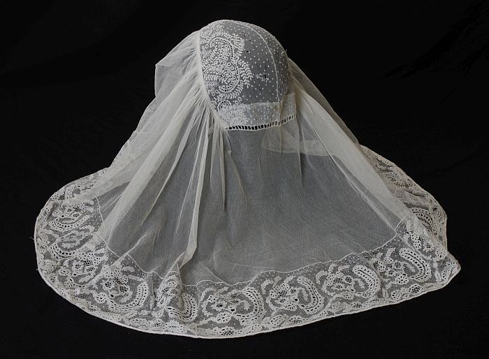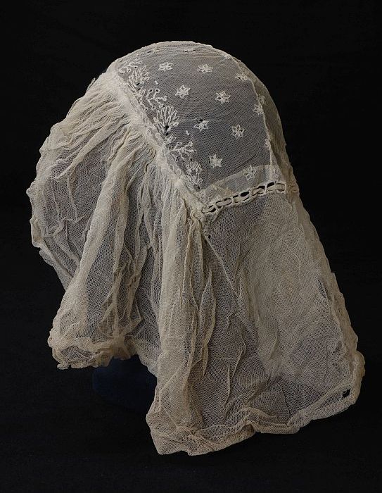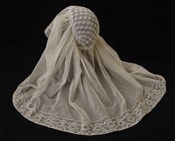 Rouwkeuvel, muts van vergeeld fijn tule, streekdracht