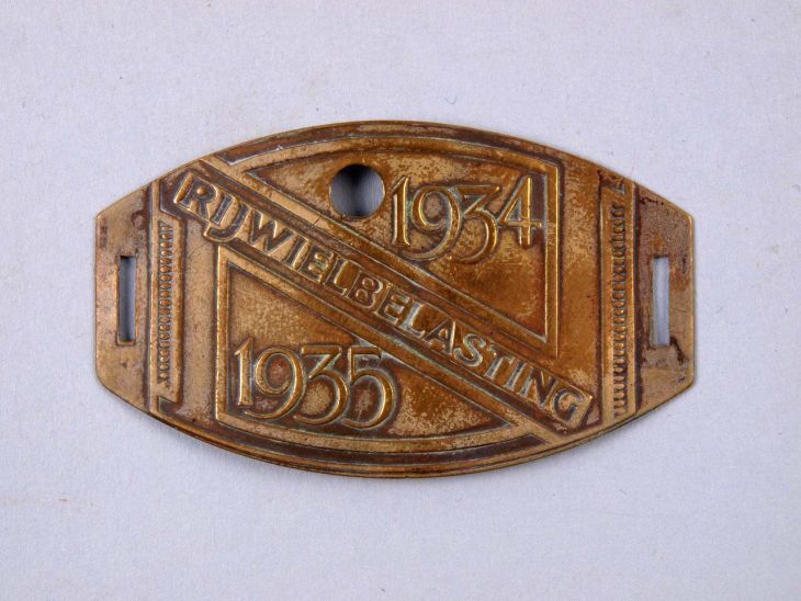 Fietsplaatje, messing 1934/1935, met gaatje