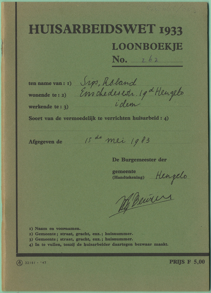 Huisarbeidswet 1933 : loonboekje