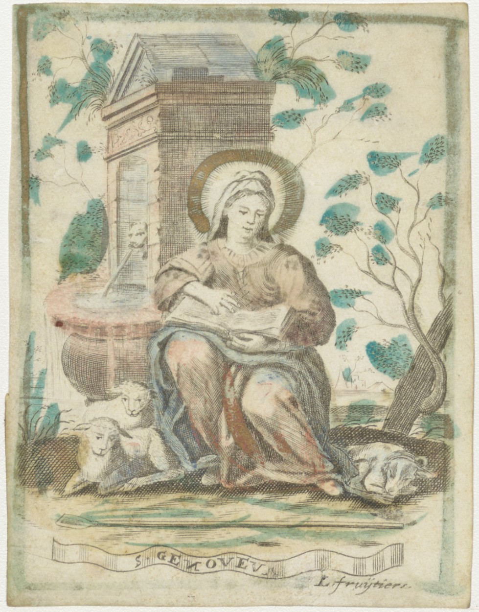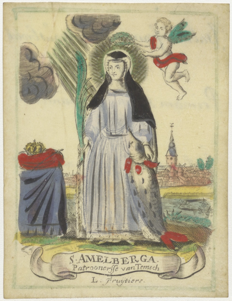 H. Amelberga, patroonesse van Temsch, ingekleurd, kz...