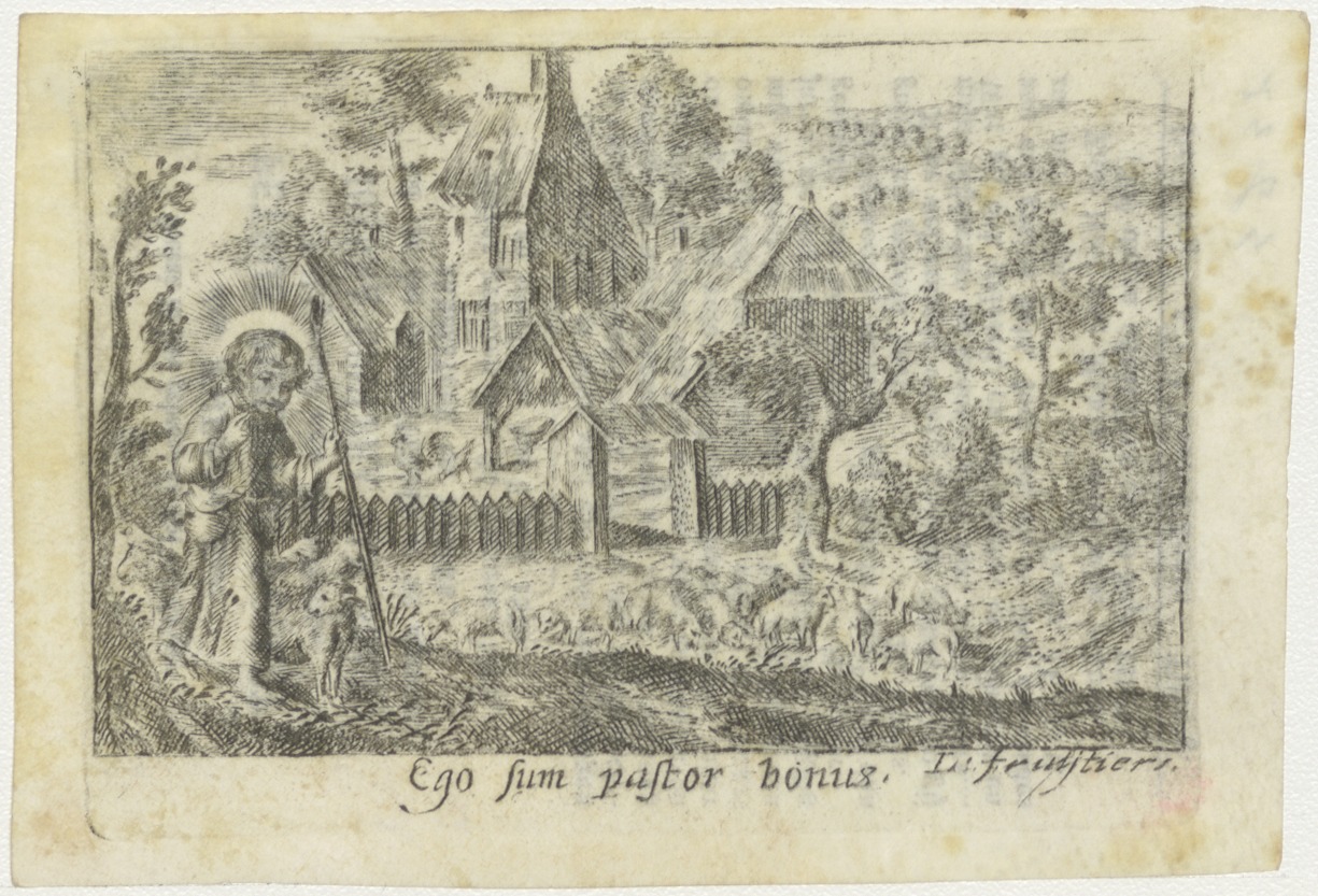 Christuskind als schapenhoeder, kz. Bid voor ziel Pe...