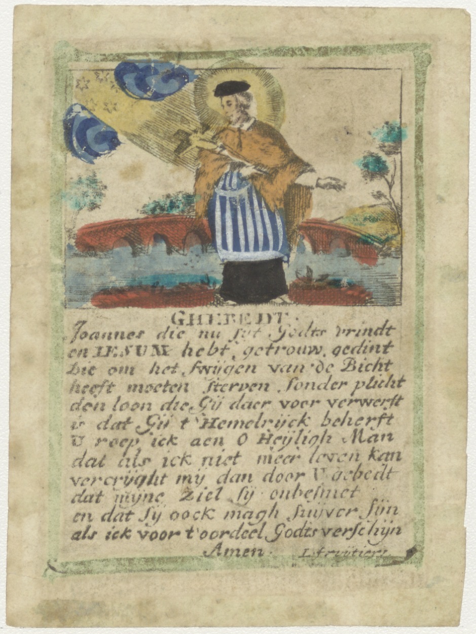 H. Franciscus de Hieronymo, met gebed, ingekleurd, k...