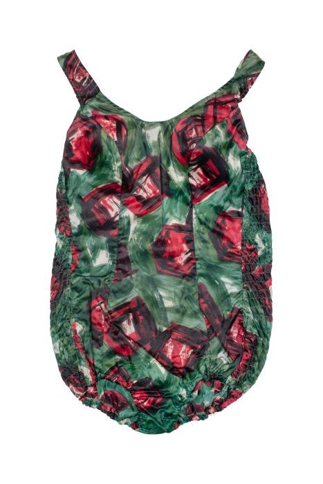 Nylon badpak met donkergroen en rood dessin
