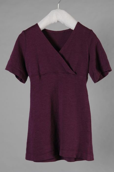 Mini-jurk van paars jersey, voorpand met overslag, k...