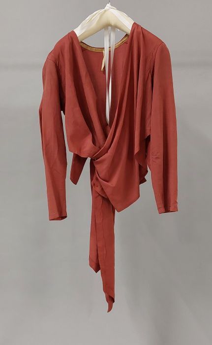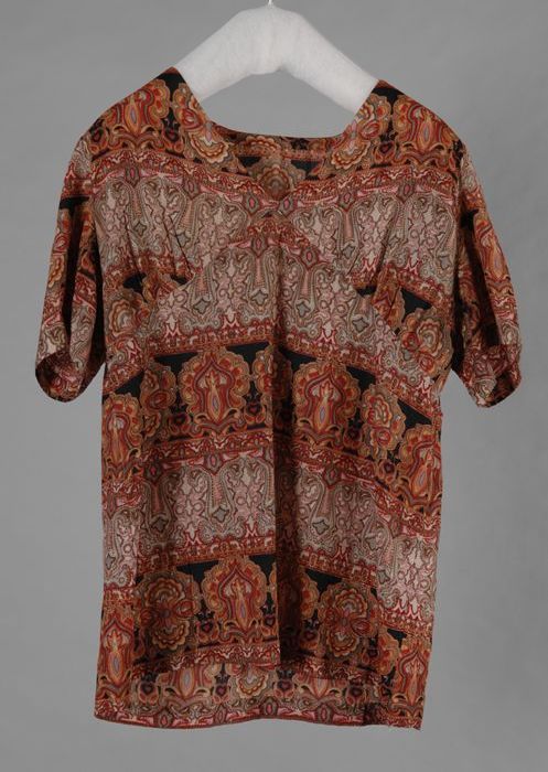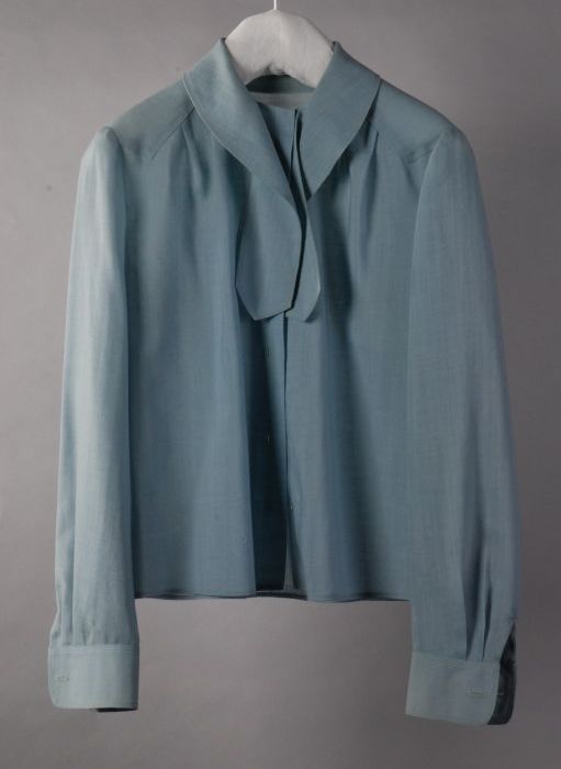 Blouse van grijsblauwe stof, voor geplooid aan de sc...