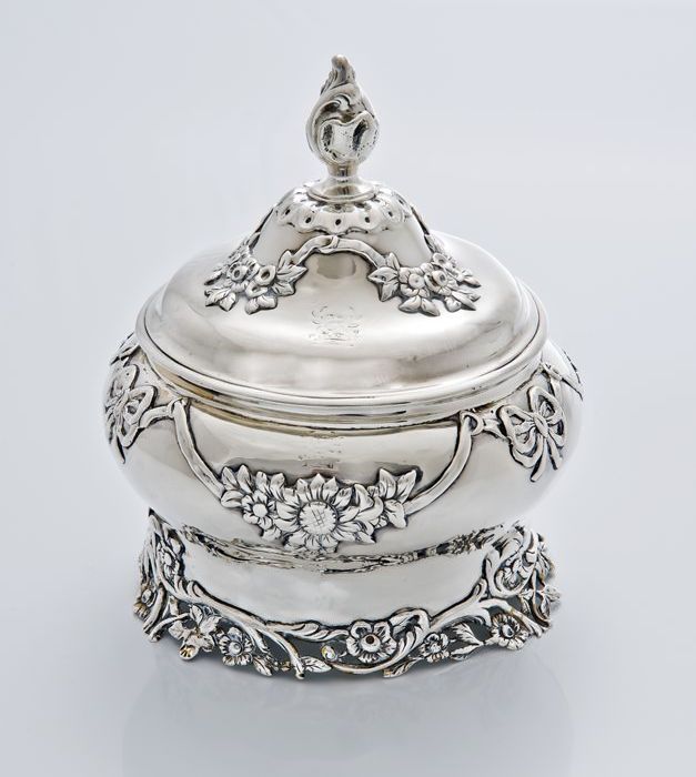 Zilveren tabakspot met deksel