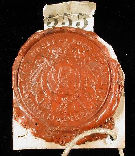 Lakzegel, afdruk stempel voor de Vrederechter in het...