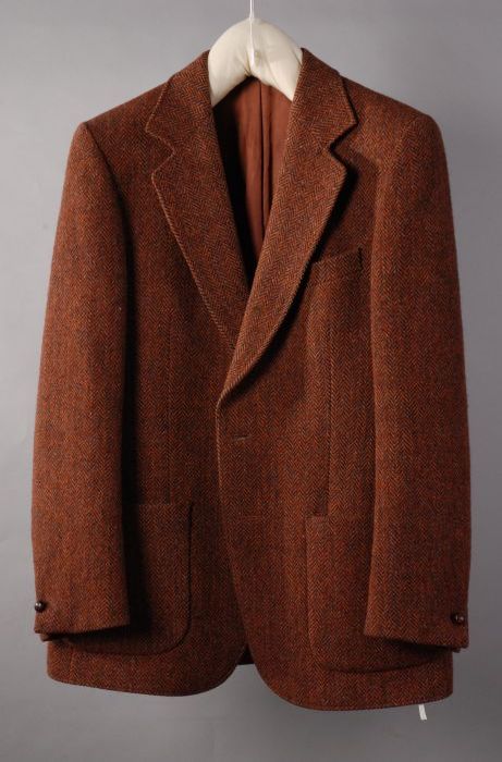Colbert van ruwe roestbruine wollen tweed in visgraa...
