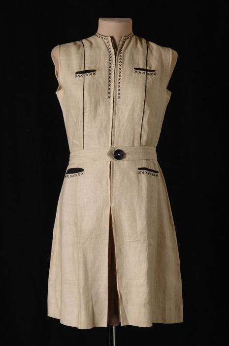 Combinaison van wit katoen, mouwloos met knoopsluiting