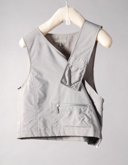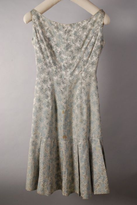 Mouwloze japon van zilvergrijs en grijsblauw satijn,...