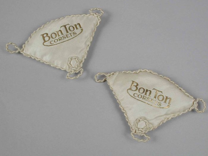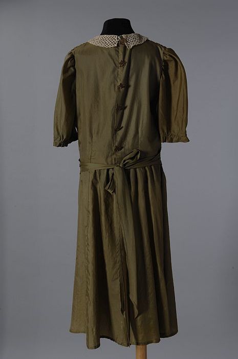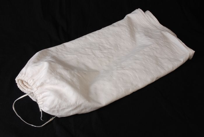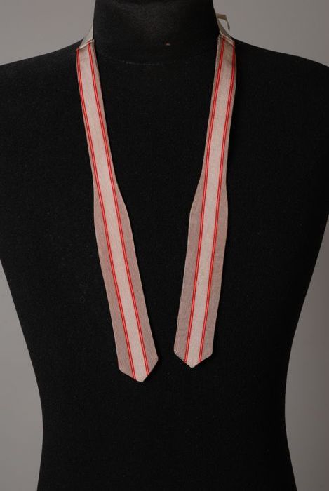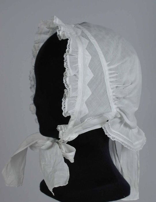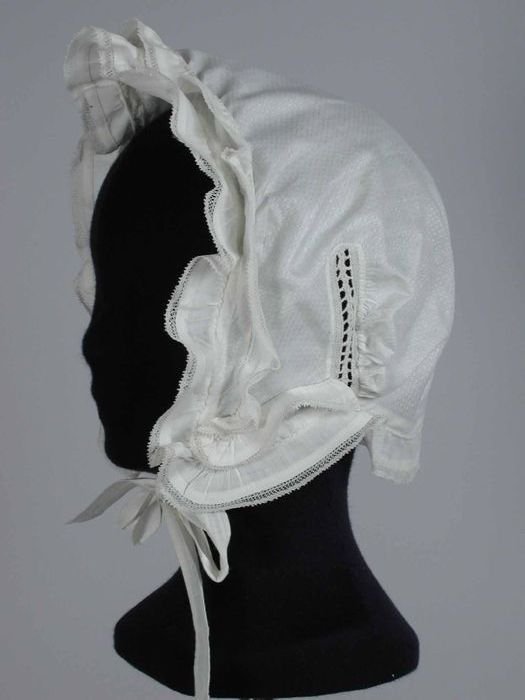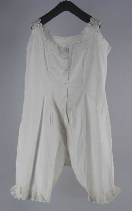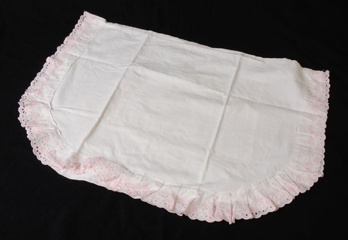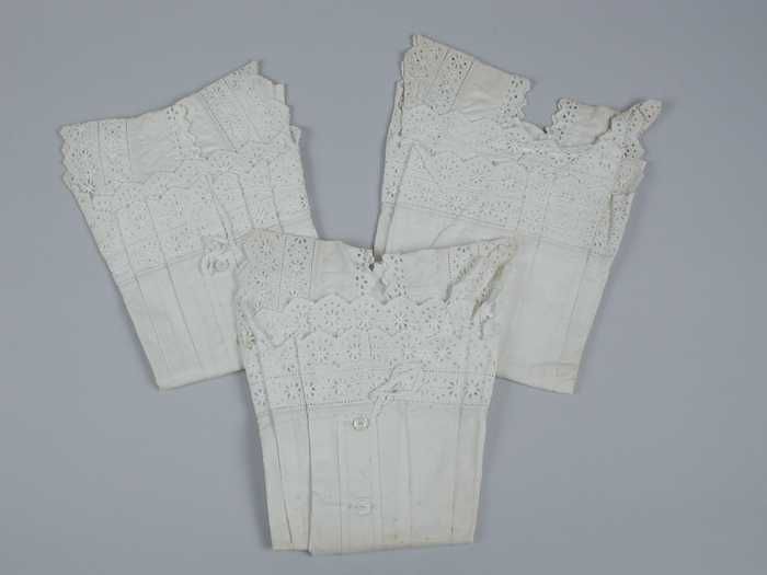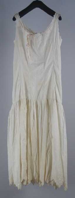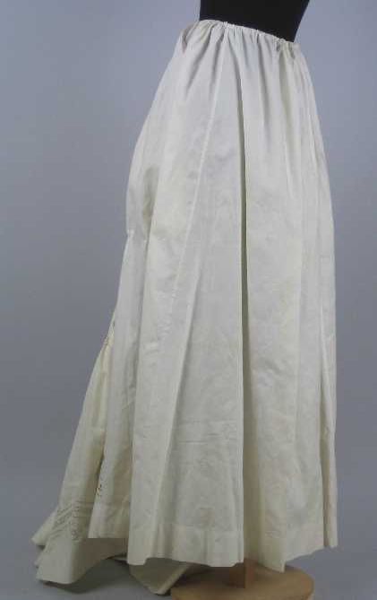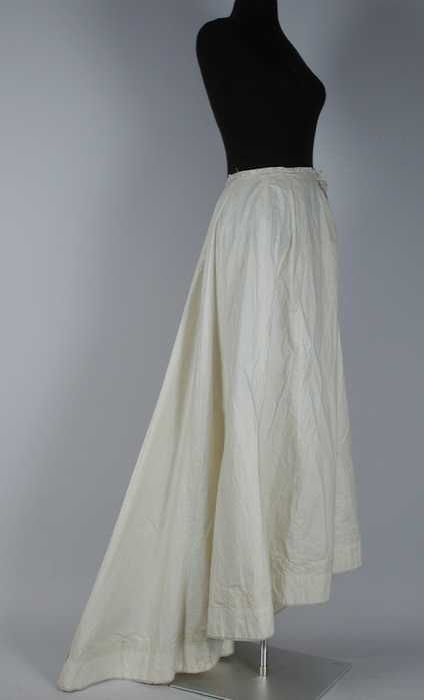 Lange onderrok van wit katoen, achter een sleep met ...