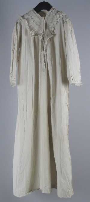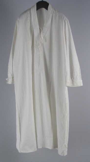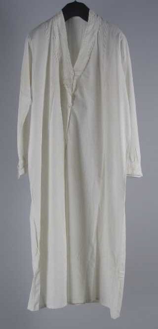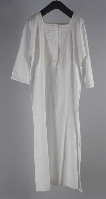 Lange gerende nachtjapon van wit katoen, vierkante h...