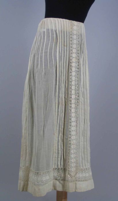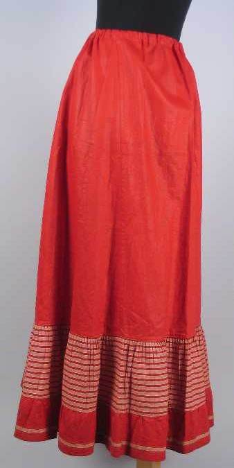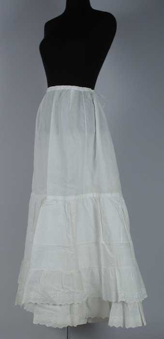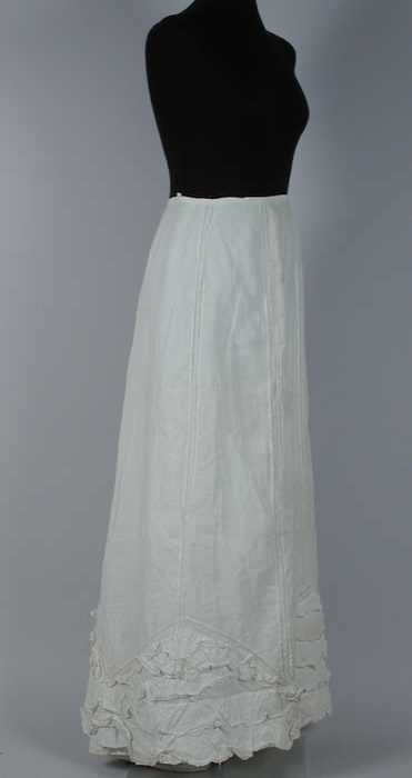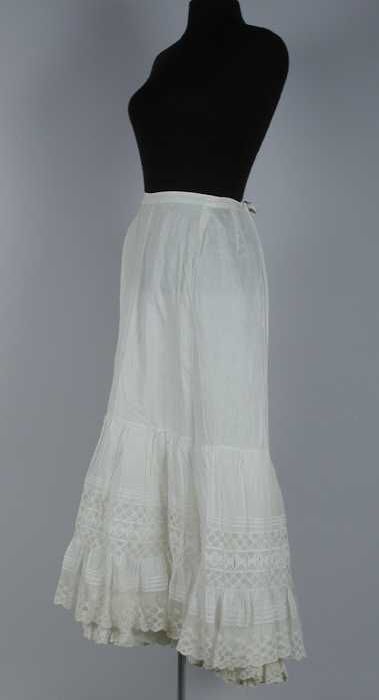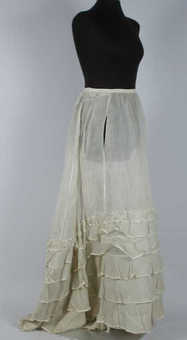 Lange wijde onderrok van wit katoen, halverwege een ...