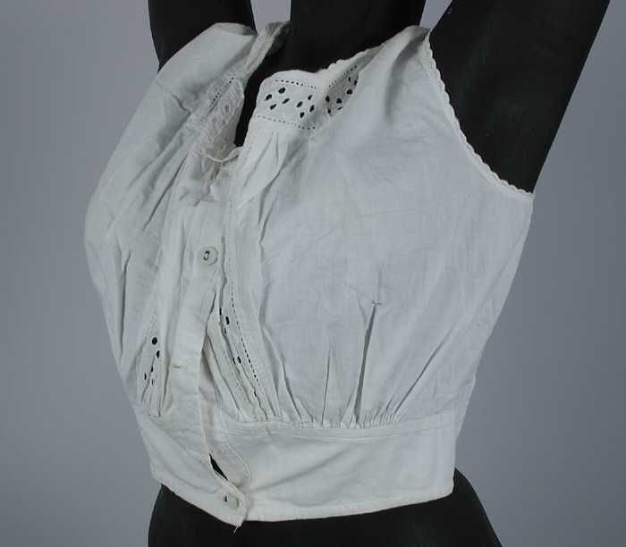 Mouwloos kort onderlijfje van wit katoen, broderie l...