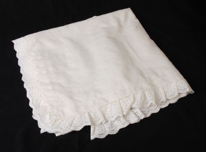 Lange wijduitlopende rok van doopjurk, van wit katoe...
