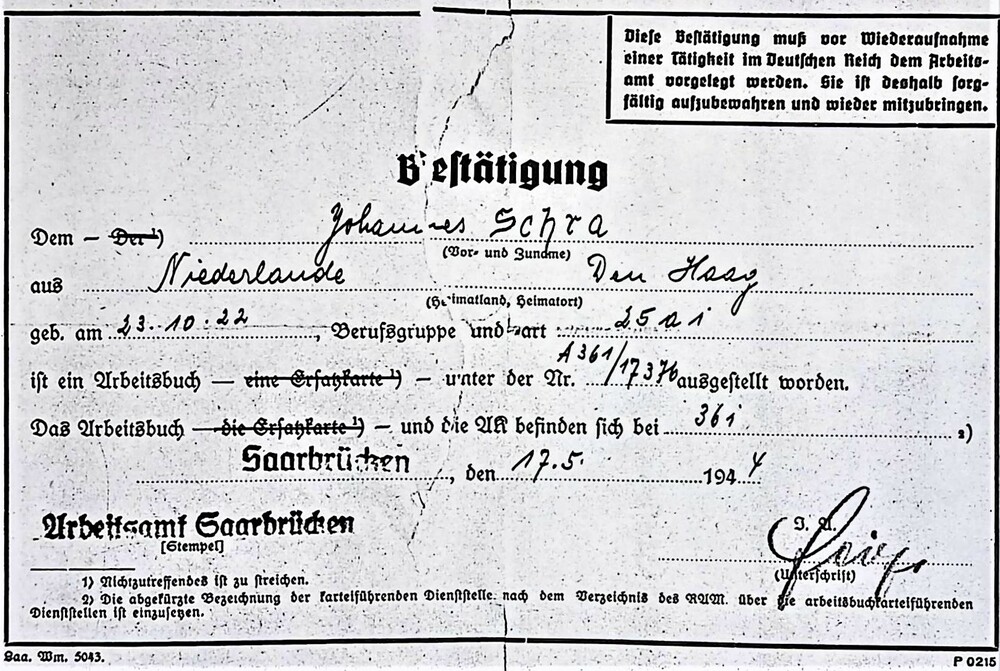Bestätigung op naam van J.A Schra.