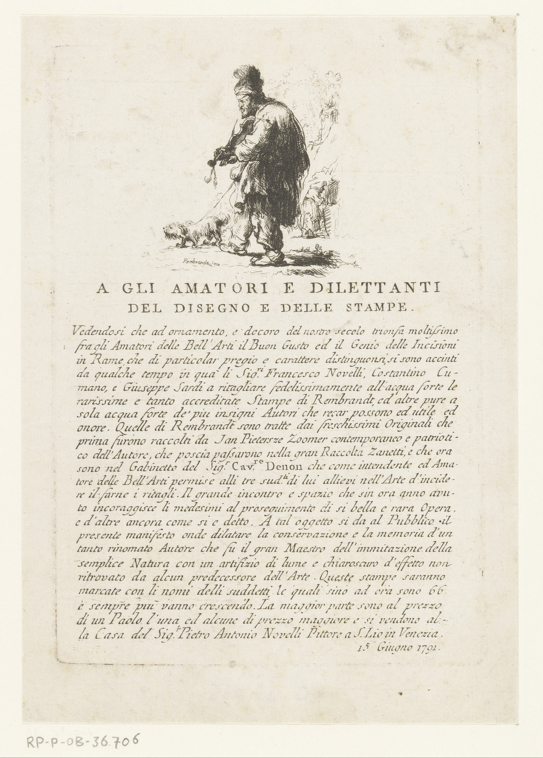 Pamflet met vioolspeler en hond