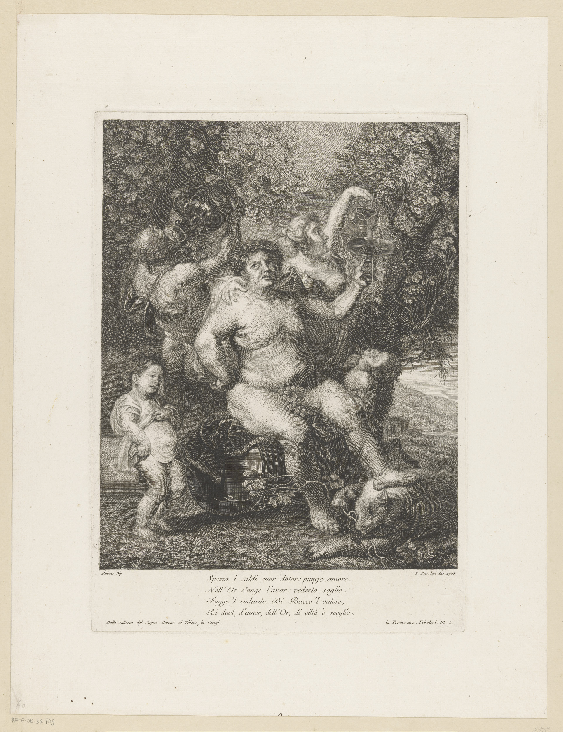 Bacchus op een wijnvat