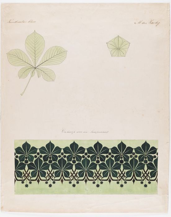 Ontwerp, tekening van pijlkruidblad, tevens gestilee...