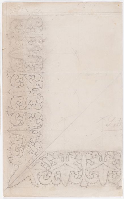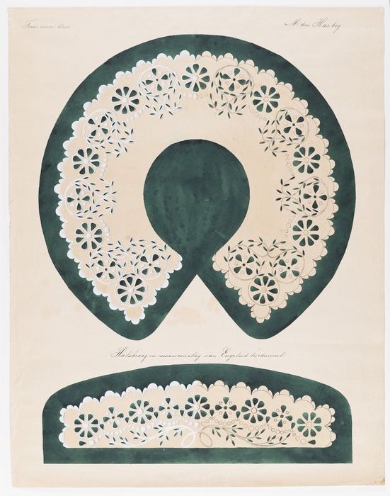 Twee tekeningen, halskraag en mouwomslag met Engels ...