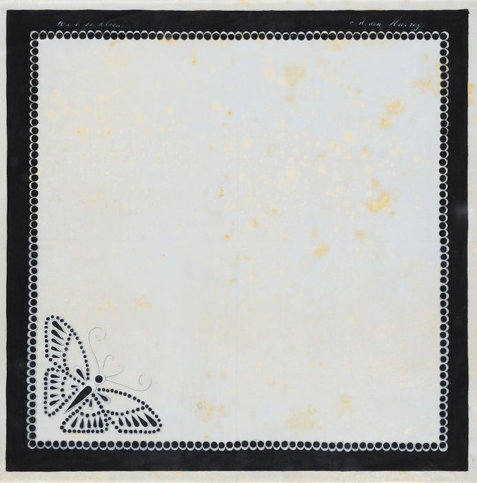 Ontwerptekening, zakdoek met vlinder en randen in En...