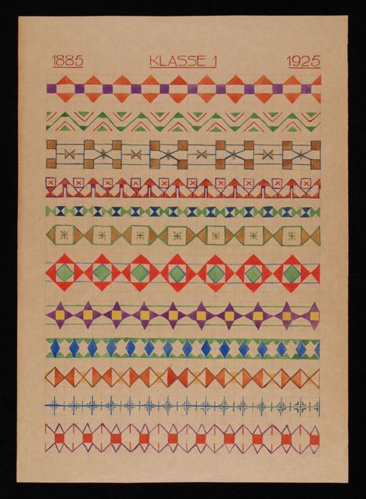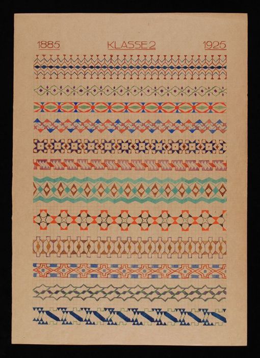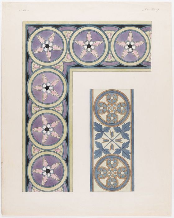 Twee tekeningen van verschillende ornamentranden met...
