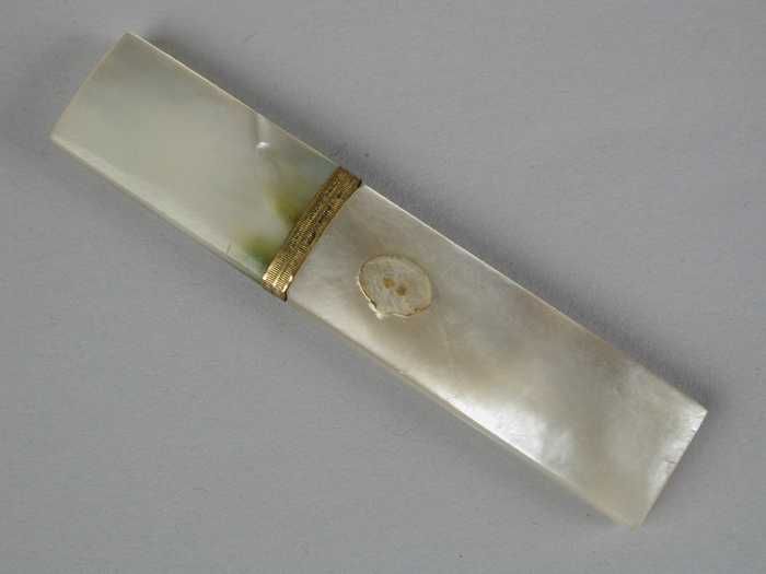 Platte rechthoekige naaldenkoker van parelmoer met g...