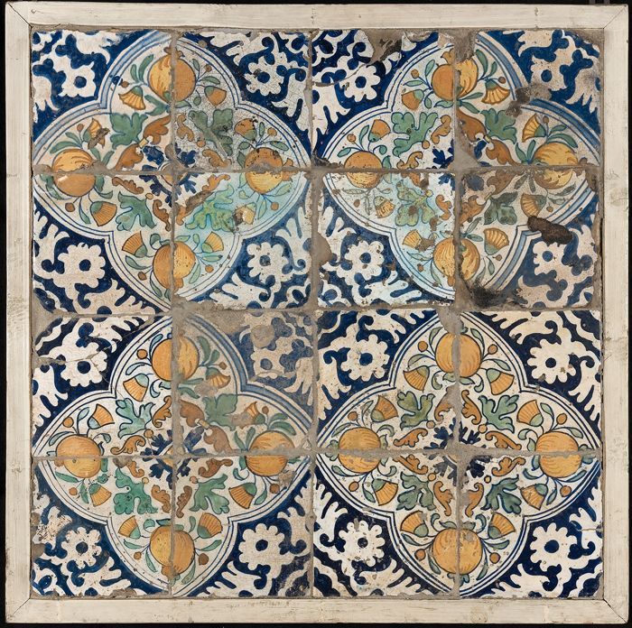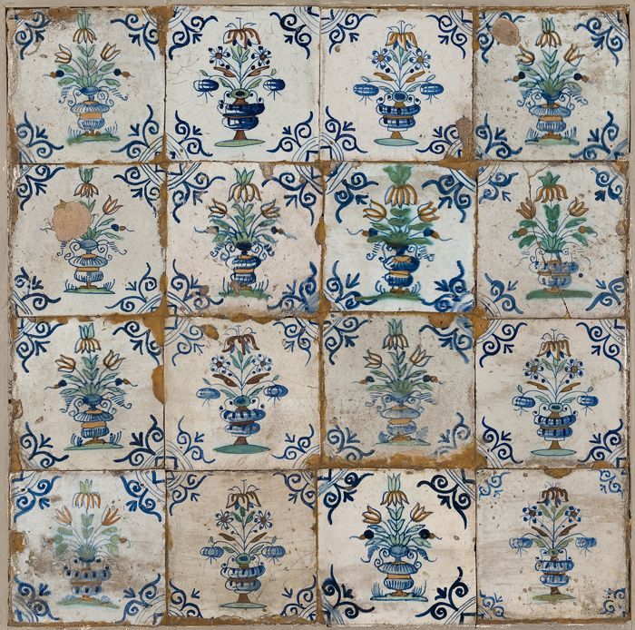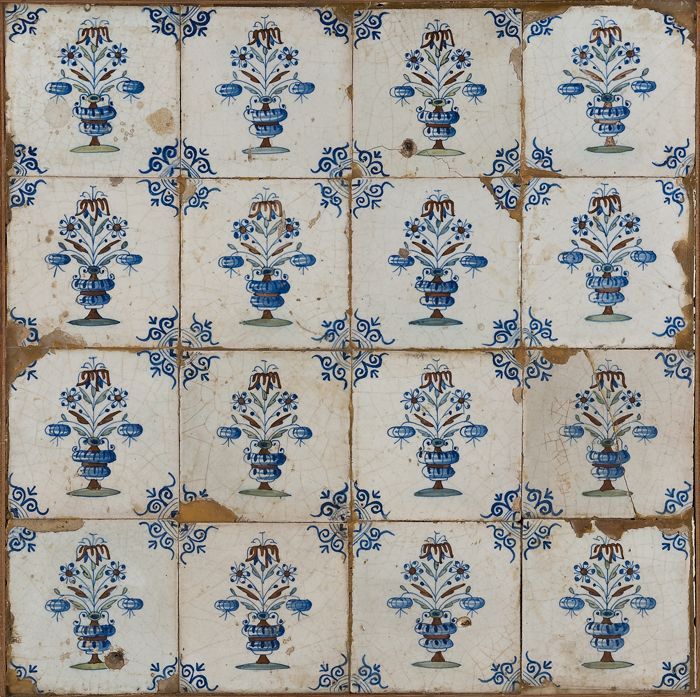 Tegelveld van zestien stuks, vier hoog, vier breed; ...