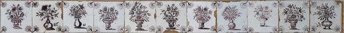 Tegelveld van negen stuks, een hoog, negen breed; zw...