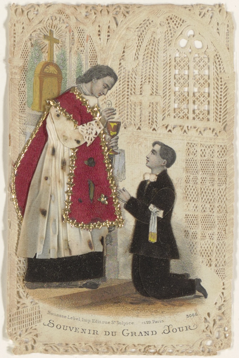 Communieprent (Frans) priester met jongen