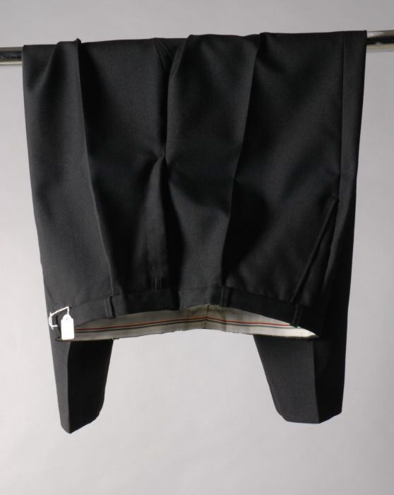 Driedelig rokkostuum, zwart wollen jacquet met vest ...