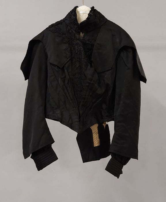 Getailleerd zwart jak, zijdesatijn met applicatie mi...