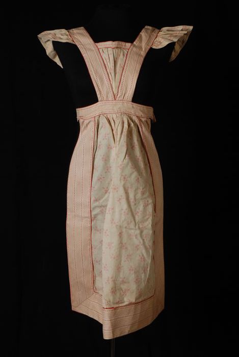 Dienstbodeschort van wit katoen met roze bloemen