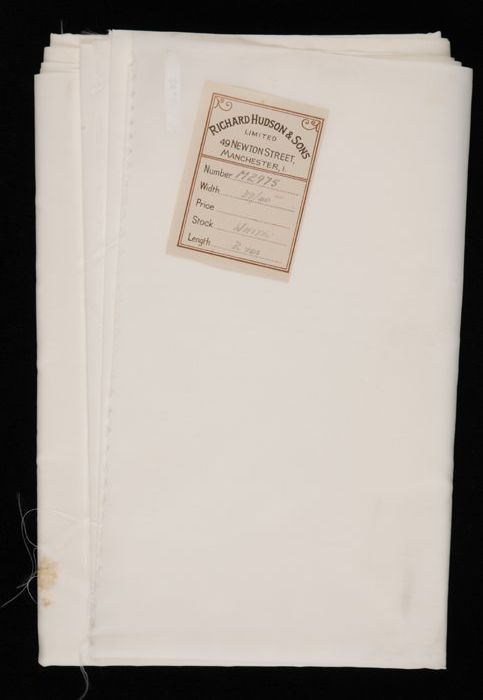 Lap witte stof, opgevouwen met etiket "Richard Hudso...