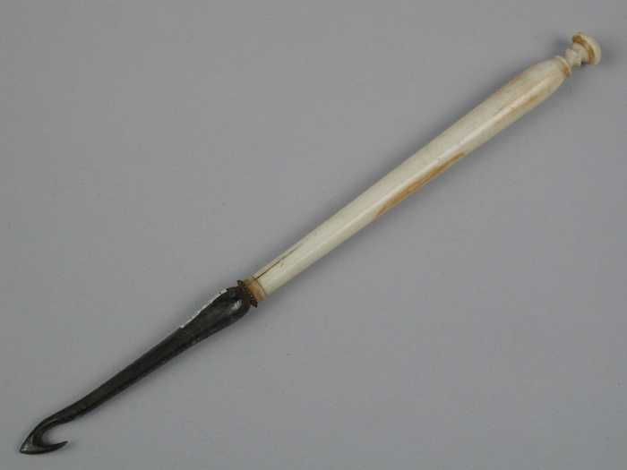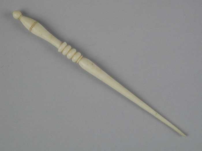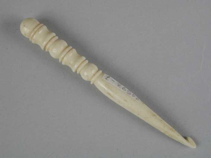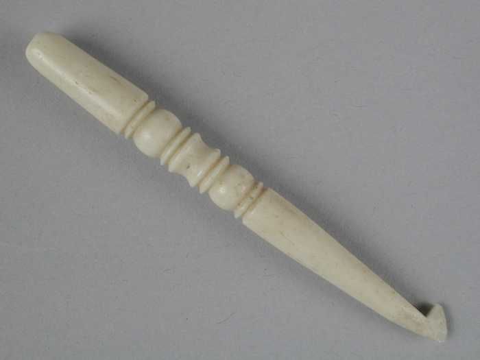 Lange dunne haaknaald van been of ivoor