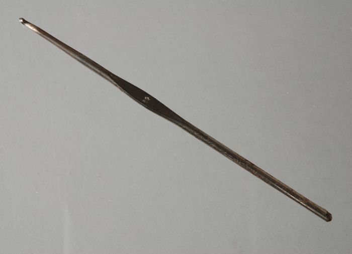 Haaknaald met metalen haakdeel en handvat van been o...