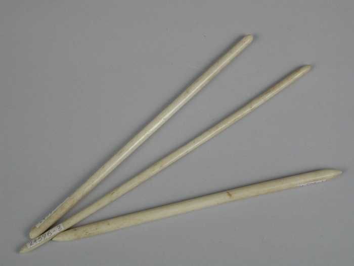 Drie korte benen of ivoren breinaalden met stompe pu...