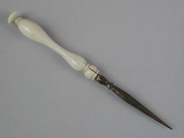 Korte priem van metaal met handvat van been of ivoor