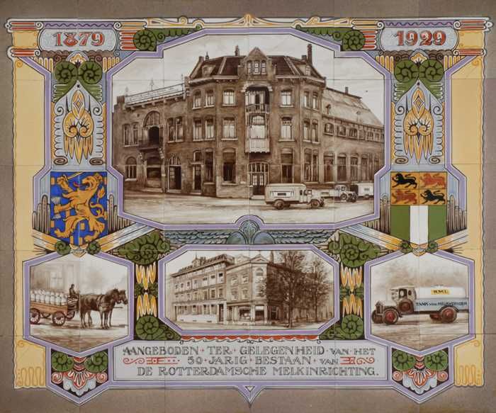 Veelkleurig tegeltableau, de Rotterdamse Melkinricht...