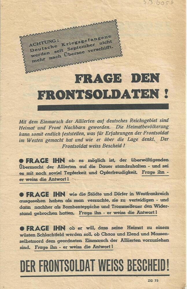 Pamflet: "Frage den Frontsoldaten!/Frontsoldat: Frag...