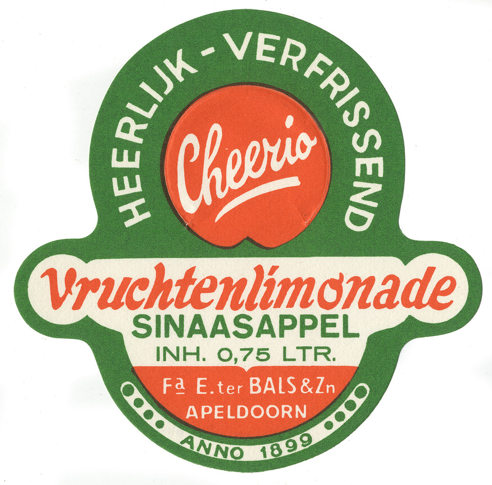 Etiket voor fles Cheerio vruchtenlimonade