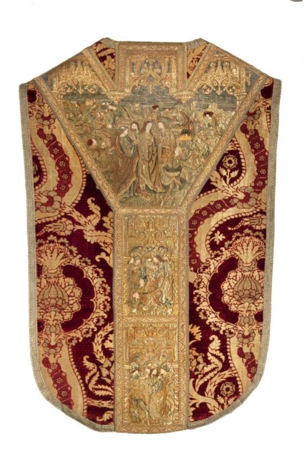 Kazuifel met geborduurde voorstellingen uit het leve...