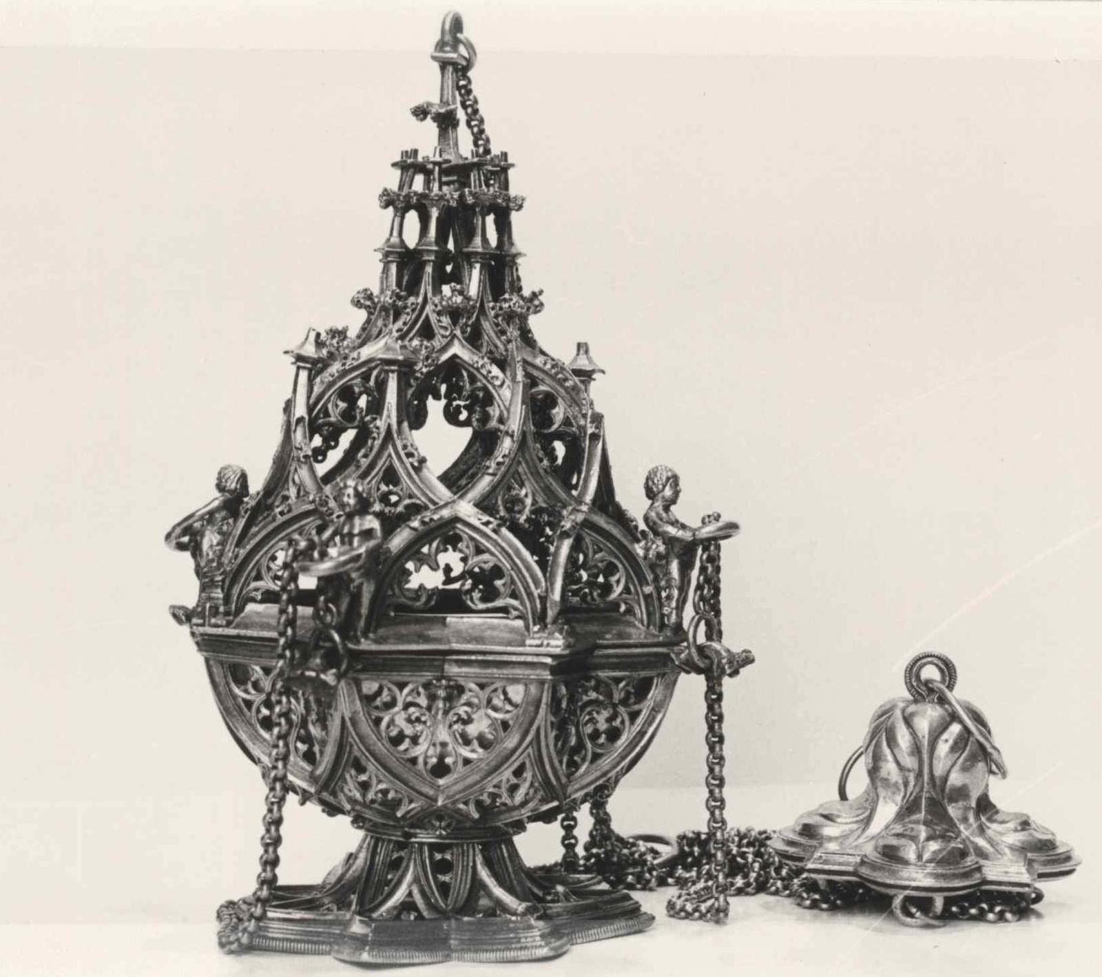 Wierookvat. Laat-gotisch, met opengewerkt flamboyant...