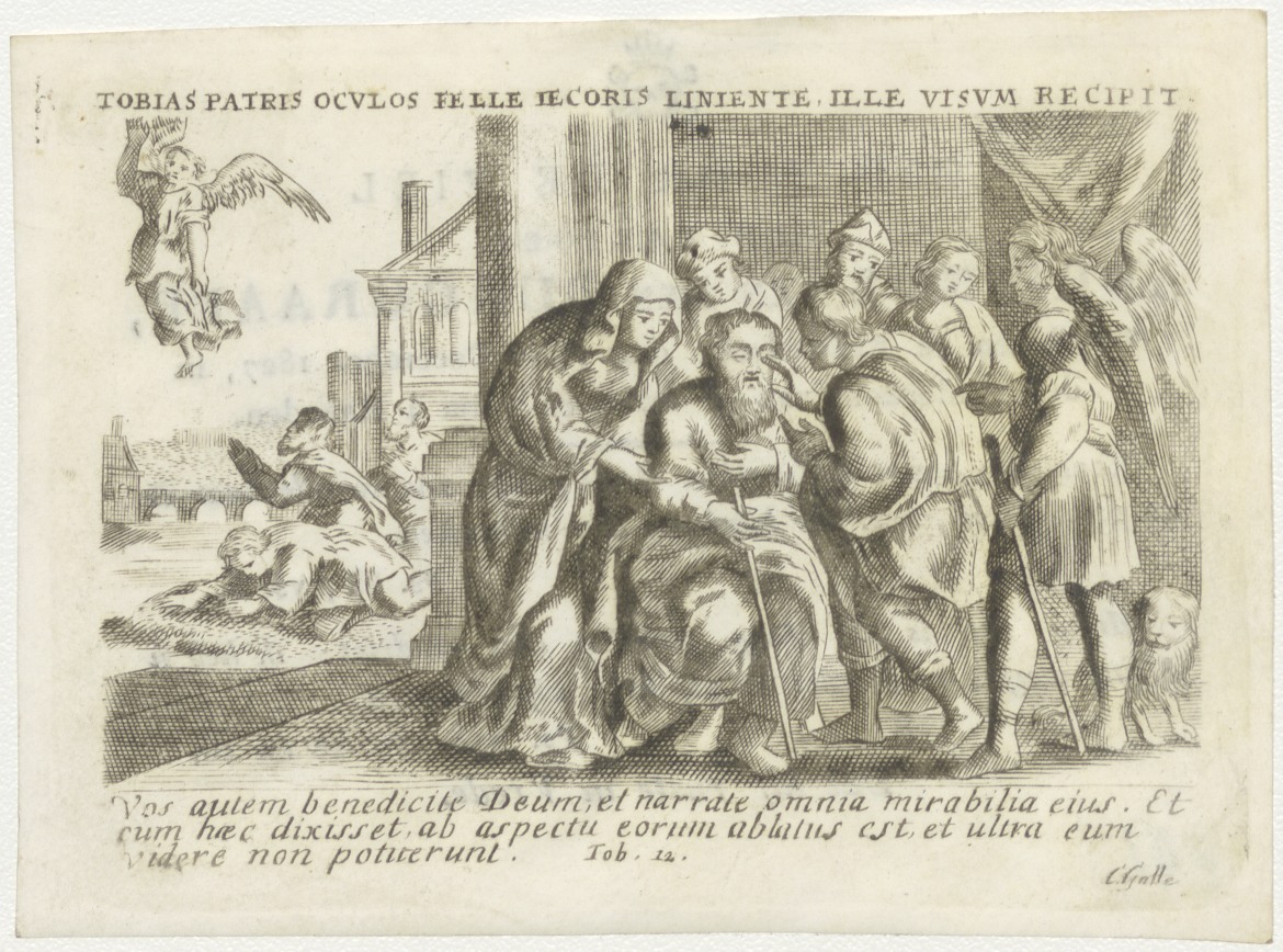 Tobias geneest zijn vader van blindheid (Tob. 12), k...