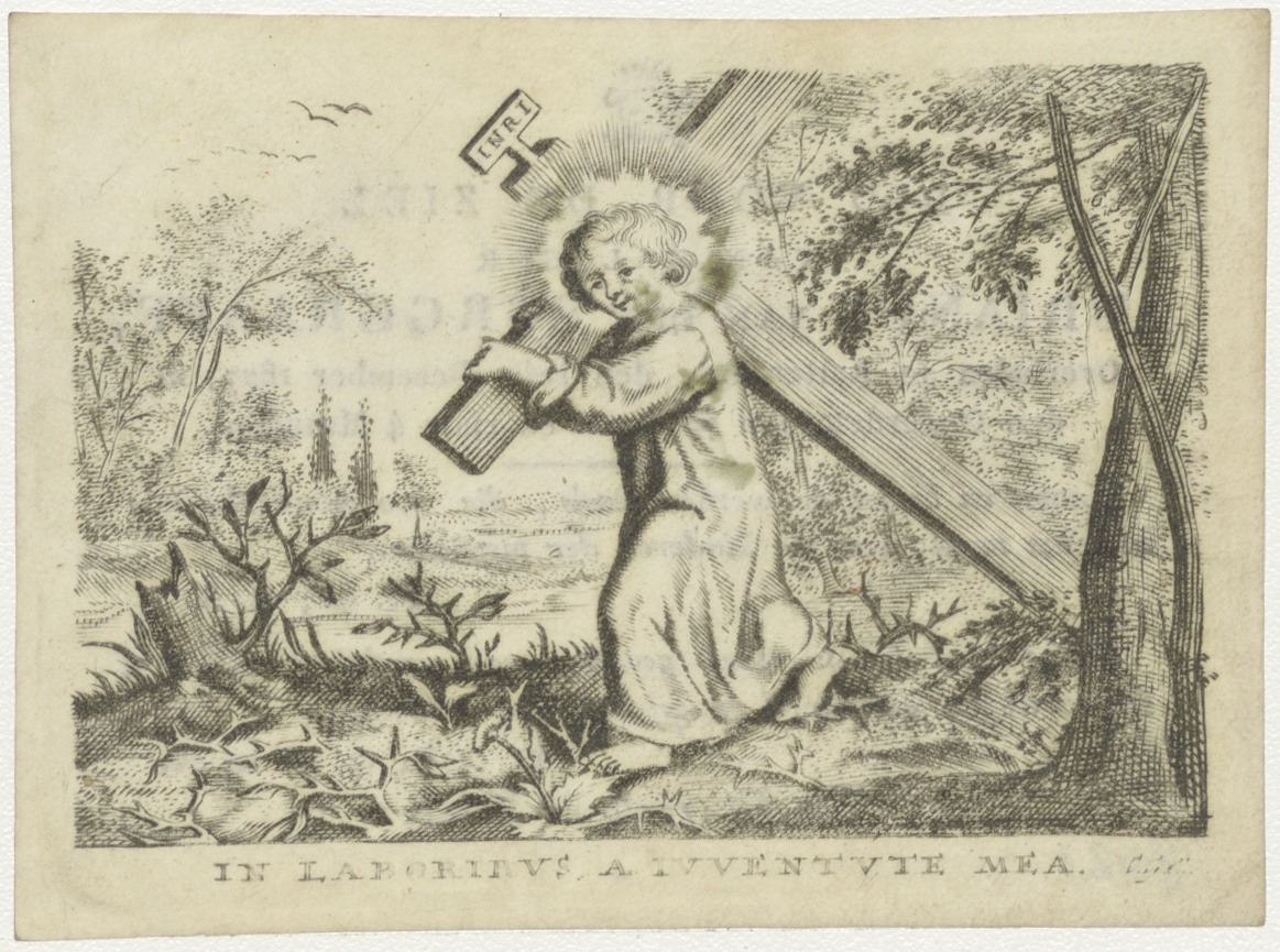 Christuskind met kruis, kz. Bid voor ziel Van den Bu...